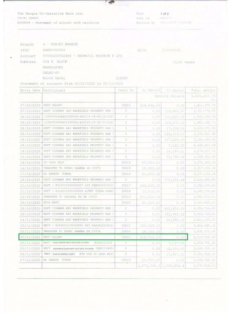 Home/Compliance documents for the month of Oct., 2020